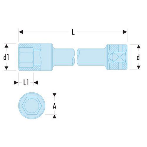 Impact-doppen 1 6-kant extra lang, metrische maten, Aantal kanten: 6, Type nr.: NM.32ELA