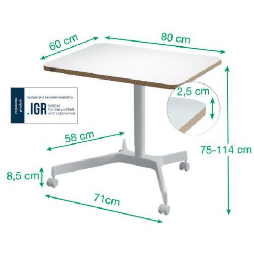 Zit-Sta Bureau Ergo mobiel 60 x 80 cm, Type onderstel: 2 poten, Totale breedte: 80 cm
