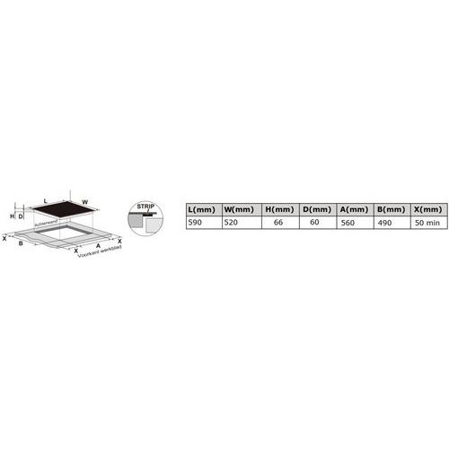 | Productnaam | Inbouw inductie kookplaat, Kleur: Zwart, Aantal inductie zones: 4, Vermogen: 3500 W, Spanning: 220 V |