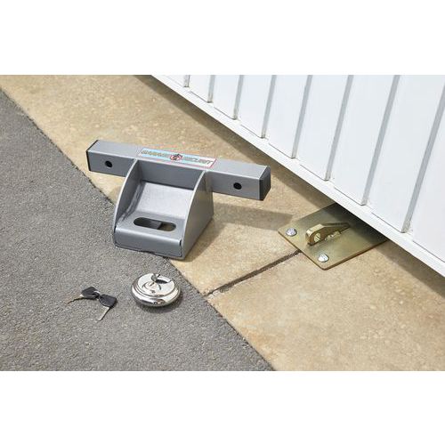 Voorkom forcering van de garagedeur: twee aanslagen aan de binnenkant, bevestigd op de vloer