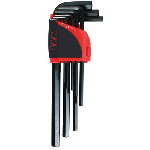 | Productnaam | Inbussleutel 6-kant lang in houder 9 delig, Schroef uitsparing: Binnenzeskant, Aantal sleutels: 9 |
