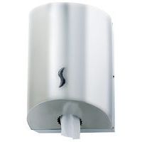 - Robuuste dispenser van polycarbonaat, kleur wit en kap doorschijnend blauw.
