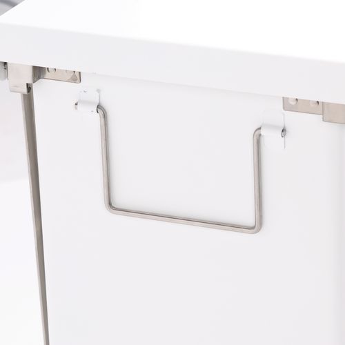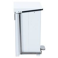 Deze robuuste witte afvalbak met pedaal is bestand tegen vuur en slechte weersomstandigheden.