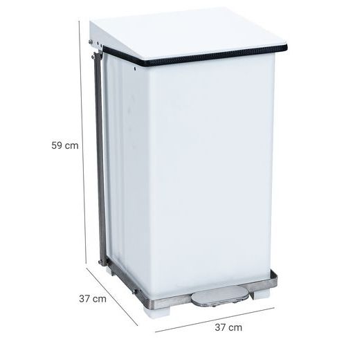 De afvalbak met pedaal is verkrijgbaar in de formaten 45 liter en 90 liter.