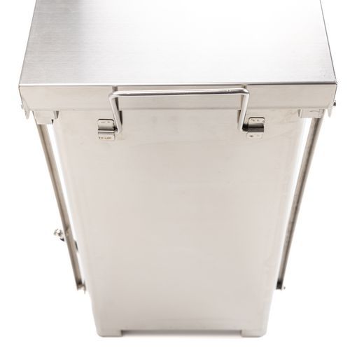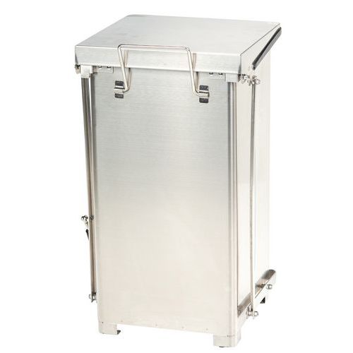 Deze robuuste afvalbak van rvs met pedaal is brandwerend en bestand tegen slechte weersomstandigheden.
