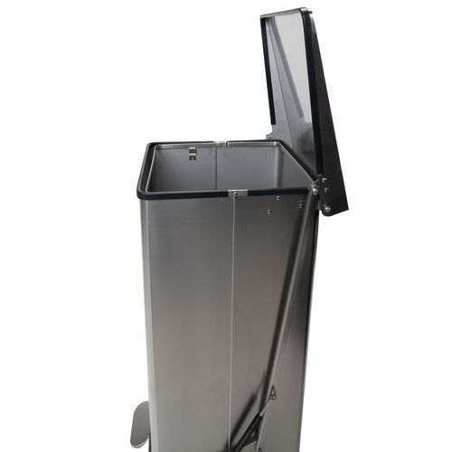 Deze robuuste en elegante industriële afvalbak met pedaal is verkrijgbaar in twee maten, met een capaciteit van 90 of 45 liter. Het deksel wordt bediend met een pedaal en is voorzien van een geleidelijke en gedempte sluiting. Deze afvalbak met pedaal heeft een geïntegreerde zakhouder van rvs. De behuizing van de afvalbak is bevestigd aan de poten. De afvalbak is gemaakt van roestvast staal en is duurzaam en eenvoudig te reinigen. Geschikt voor professionele keukens, horecagelegenheden buiten en productielocaties voor voedingsmiddelen. 10 jaar garantie. Alle producten van Manutan zijn getest en goedgekeurd door onze teams.