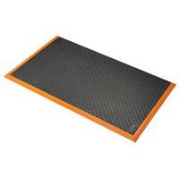 Antivermoeidheidsmat van hoge kwaliteit voor industriële omgevingen met intensief gebruik. Ergonomisch comfort dankzij een 20 mm dik werkplatform. Randen van oranje nitrilrubber: duidelijk zichtbaar aan 3 zijden, voor meer veiligheid. Gemaakt van rubber, 100% nitril, ontwikkeld om bestand te zijn tegen industriële oliën en agressievere chemicaliën. Zorgt voor een goede stabiliteit om glij- en valpartijen te voorkomen, terwijl de kanaaltjes gemorste olie afvoeren.