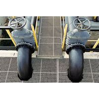 - Grijs, flexibel PVC rooster voor technische wegen op platte daken, verkeersbruggen en hoge loopbruggen.