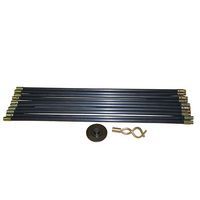 - De set bestaat uit tien aan elkaar te schroeven flexibele stangen met een maximale totale lengte van 9 meter.