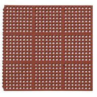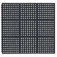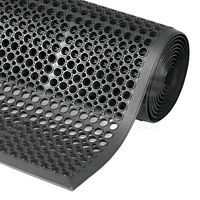 - Het gatenpatroon zorgt voor een antislipoppervlak dat vocht doorlaat, vuil opvangt en ventileert naar de vloer. Het is eenvoudig om de mat op de vloer af te spoelen tijdens het schoonmaken. Door de speciale rubbersamenstelling van natuurlijk rubber en nitrilrubber is de mat bestand tegen gemorste oliën, vetten en chemicaliën, heeft hij een hoge slijtvastheid en hittebestendigheid en is hij geschikt voor gebruik in magazijnen, lichte en zware industrie. De modules kunnen worden afgewerkt met afgeschuinde randen om het risico op struikelen te verminderen. Dankzij het modulaire systeem van modulaire delen van 91 x 91 cm kan de mat gemakkelijk worden neergelegd tot de gewenste grootte en net zo gemakkelijk weer uit elkaar worden gehaald.