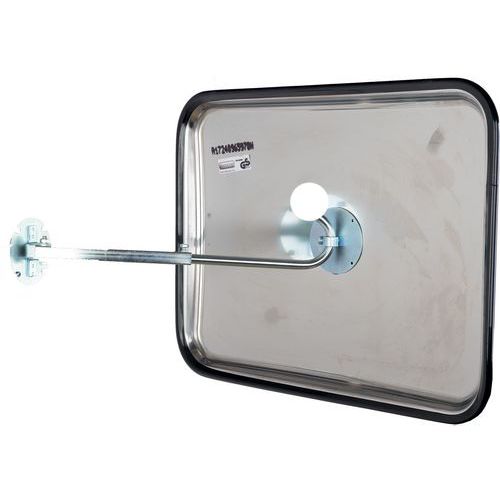 Industriële spiegel van rvs, Bewakingsradius: 15 m, Vorm: Rechthoek, Zicht: 110 °, Breedte spiegel: 600 mm