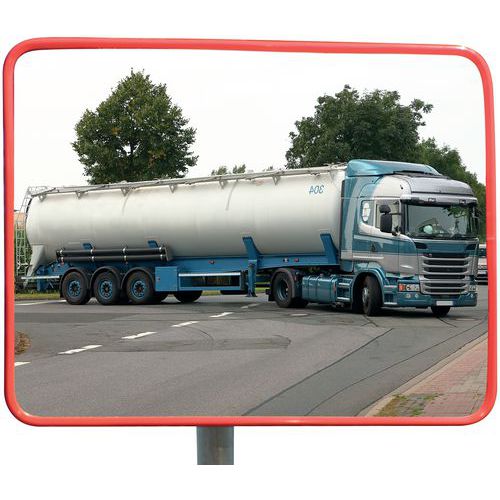 Industriële veiligheidsspiegel voor meer veiligheid in industriegebieden, enz. Bestand en robuust: getest bij harde windstoten van kracht 12 (orkaan groter dan 117 km/u). Vierpuntsbevestiging aan paal of muur met kogelgewricht voor een betere afstelling. Rood kader om de aandacht te trekken. Acrylspiegel: sterker dan glas. Uitstekende beeldfeedback zonder vervorming. Eenvoudig te installeren.