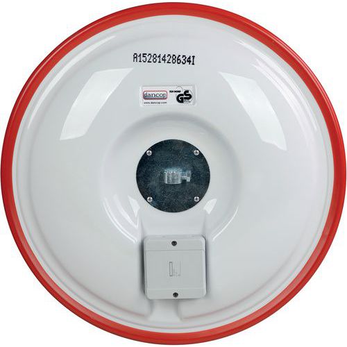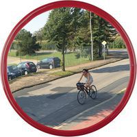 Industriële veiligheidsspiegel voor meer veiligheid in industriegebieden, enz. Bestand en robuust: getest bij harde windstoten van kracht 12 (orkaan groter dan 117 km/u). Vierpuntsbevestiging aan paal of muur met kogelgewricht voor een betere afstelling. Rood kader om de aandacht te trekken. Acrylspiegel: sterker dan glas. Uitstekende beeldfeedback zonder vervorming. Eenvoudig te installeren.