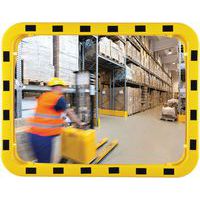 Industriële spiegel met gele en zwarte reflecterende frames om de alertheid te verhogen. Helder en helder zicht dankzij de acrylfabricage. Uitstekende beeldfeedback zonder vervorming door metallisatie aangebracht op de achterkant. De meeste zijn gemaakt van acryl, beter bestand tegen schokken dan glas. Uv-bestendig.