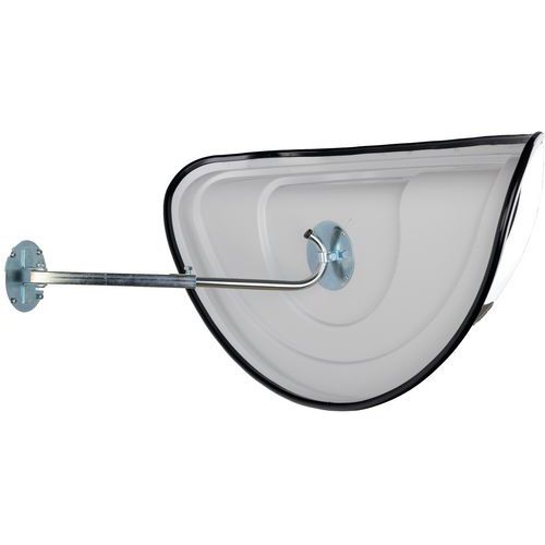 Industriële spiegel, ideaal voor toezicht op verkeer in productiezones. Uitstekende beeldkwaliteit zonder vervorming dankzij de metalen plaat die aan de achterzijde is bevestigd. Gemaakt van acryl, beter bestand tegen schokken dan glas. Zeer groot gezichtsveld van 180° voor een beter overzicht. Eenvoudig te monteren: muurbevestiging meegeleverd.