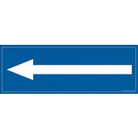 Informatiebord, pijl naar links, blauwe achtergrond, 210 x 75 mm.