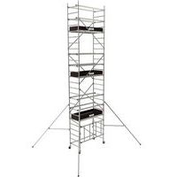 Inklapbare rolsteiger Runner met lichte aluminium constructie en werkhoogte tot 7,60 m. Maximale veiligheid met liggers en onderliggers die door één persoon kunnen worden bevestigd met behulp van T-GRIP-telescoopstangen. Inklapbare voet voor moeiteloze en snelle montage van de constructie, die ook eenvoudig kan worden vervoerd en opgeborgen. De steiger kan worden gebruikt met niveau-arrêtering en heeft een afneembare voet. Perfect voor binnenruimten met grote deuropeningen. Stevig en veilig met verstevigde planken met ergonomische haken en een zeer krachtig blokkeersysteem voor de wielen. Deuropening: 93 cm.