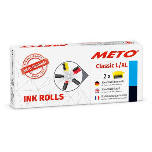 Blisterverpakking met 2 zwarte inktrollen voor eenvoudige en schone vervanging. Geschikt voor de maten L/XL van de series Meto Expert, Meto Industry, Meto Classic en de voorseries Eagle, Proline en NM. 1 inktrol is voldoende voor ongeveer 30.000 etiketten.