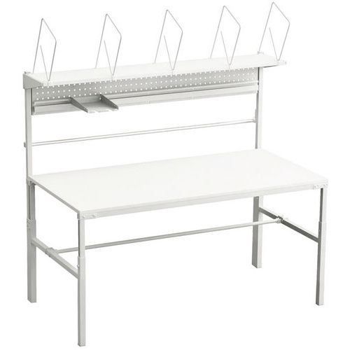Inpaktafel TPB. Een zeker alles-in-een-oplossing, voordelig en ergonomisch. Een plat pakket bevat de hele basisuitrusting. Eenvoudig te kopen, vervoeren en monteren. Met zorg uitgekozen materialen, afwerking van superieure kwaliteit, onderdelen van epoxy-staal (RAL 7035). Stalen werkbank, gelamineerd op lage druk 25 mm. Maximale belasting: 300 kg.