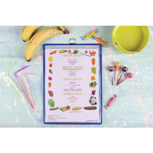 Insteekhoes voor A3-documenten om op te hangen in staand formaat. Frame van onbreekbaar staaldraad van TARIFOLD. Aantrekkelijke kleuren voor thematische weergave. Transparant, niet-reflecterend oppervlak. Zeer stevig, verchroomd metalen frame. voor wandbevestiging. Geproduceerd in Frankrijk door Tarifold. Handige oplossing voor het presenteren en omkaderen van elk type A3-documenten. Ideaal voor het presenteren van informatie in een bedrijf, op informatiepunten, in openbare ruimtes, gangen en ontvangsthallen. Voor het presenteren van documenten met permanente informatie (openingstijden, reglementen, veiligheid, evacuatie, instructies voor hygiëne...) Gemaakt in de EU Klantgarantie : 10 jaar