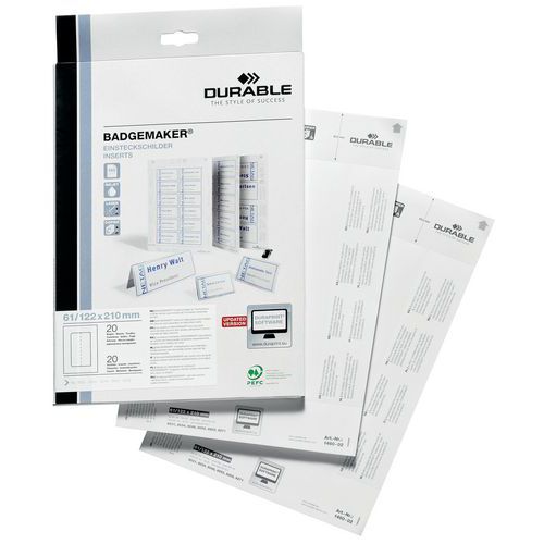 | Productnaam | Insteekkaartjes voor staande naamborden, Hoogte: 112 mm, Recyclebare verpakking: Ja - 100% |