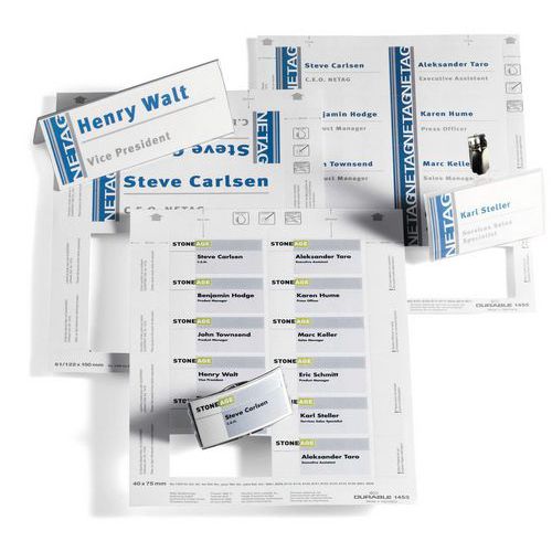 Voorgesneden kaartjes in de afmetingen van de badge. Etiketten snel en eenvoudig te scheiden dankzij micro-perforaties.