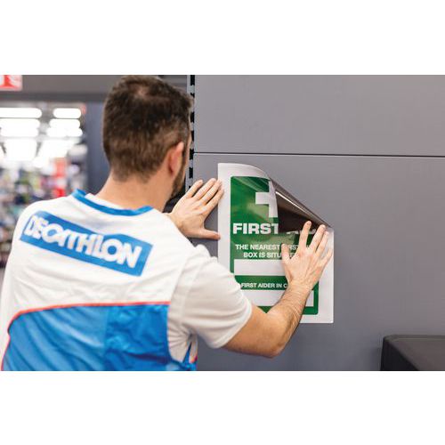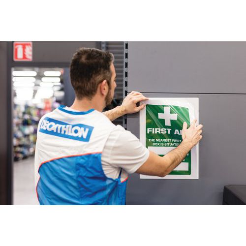 Magnetische insteekmappen Kang Easy Load kunnen op alle metalen oppervlakken worden bevestigd. Voor A4-documenten. Volledig magnetische rug voor een optimale hechting. Documenten zijn eenvoudig te plaatsen door de opening aan 2 zijden. Hoeksluiting Easy Load: handig en efficiënt voor het insteken en uitnemen van documenten. Kan staand of liggend worden gebruikt. Eenvoudige en snelle montage, zonder schroeven of spijkers. Kan worden losgetrokken zonder sporen na te laten. Kan staand en liggend worden gebruikt. Een presentatieoplossing voor gebruik op machines, deuren, metalen borden, koelkasten... Map van PVC met magnetische rug. Ruimte voor maximaal 10 vellen papier van 80 g. Volledig groene achterwand. Gemaakt in de EU