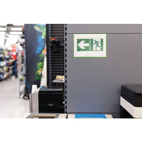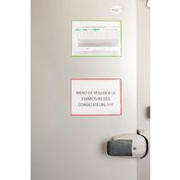 Magnetische insteekmappen Kang Easy Load kunnen op alle metalen oppervlakken worden bevestigd. Voor A4-documenten. Volledig magnetische rug voor een optimale hechting. Documenten zijn eenvoudig te plaatsen door de opening aan 2 zijden. Hoeksluiting Easy Load: handig en efficiënt voor het insteken en uitnemen van documenten. Kan staand of liggend worden gebruikt. Eenvoudige en snelle montage, zonder schroeven of spijkers. Kan worden losgetrokken zonder sporen na te laten. Kan staand en liggend worden gebruikt. Een presentatieoplossing voor gebruik op machines, deuren, metalen borden, koelkasten... Map van PVC met magnetische rug. Ruimte voor maximaal 10 vellen papier van 80 g. Volledig groene achterwand. Gemaakt in de EU