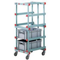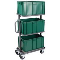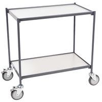 - Tafelwagen met 2 laadvlakken en duwbeugel extreem robuust dankzij de mechanisch gelaste constructie met innovatief L-profiel.