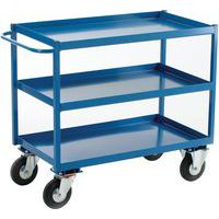 - Premium kwaliteit allrounder gereedschapswagen. Staanders van geëxtrudeerd aluminium. 3 gladde plateaus van polypropyleen en glasvezel. Duwstang van polypropyleen. Vier niet-strepende rubberen zwenkwielen (diameter 100 mm), waarvan twee met rem.