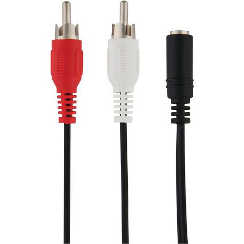 | Productnaam | Kabel jack 3,5 mm vrouwelijk naar 2 RCA mannelijk, Kabel lengte: 2 m, Kleur: Zwart, Gewicht: 53 g |