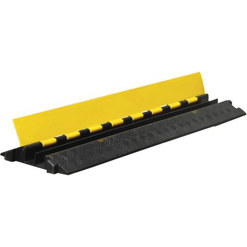 2 kanalen = 60 mm en 3 kanalen = 80 mm. Bescherming speciaal ontworpen om draden, kabels, leidingen en buizen te verbergen en te beschermen. Kabels van bovenaf in te voeren. Bescherming door afneembaar deksel, met scharnier. Snelle, moeiteloze montage en demontage zonder gereedschap. Antislip-oppervlak.