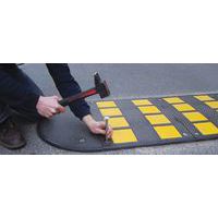 - Eéndelige verkeersdrempel hoge zichtbaarheid - Lengte 1m83 Hoogte 45 mm - Zwarte basis (gerecycled rubber) - 5 gele reflecterende strips - 10 reflectoren - Gebruik op privéwegen - Te bevestigen aan de grond (4 bevestigingsgaten) - De klant is verantwoordelijk voor de geldende regelgeving - Doorgang voor voertuigen tot 44 ton - Geleverd zonder uiteinden (RALMONO-50-EXT) en zonder bevestigingen - Afm.: L 1830 mm x B 300 mm x H 45 mm - 22 kg