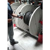 - SPIROCABLE: opwikkelaar voor bobijnen zonder zwengel + meterteller M35 kunststof wiel (voor kabel max. Ø 35 mm) op kabelverstelbank - Ontwikkeling meetwiel in gegroefd kunststof 50 cm. Voor bobijnen max. Ø 750 mm, max. breedte 366 mm, centraal gat min. Ø 25 mm - Meeneempin van Ø 15 mm met verstelbare positie van 40 tot 200 mm - Verplaatsing door kanteling op 2 wielen
