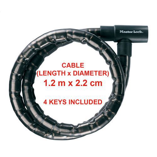 | Productnaam | Kabelslot gewapend staal 1,2m met vinyl coating, Ø: 22 mm, Lengte: 1200 mm, Aantal sleutels: 4 |