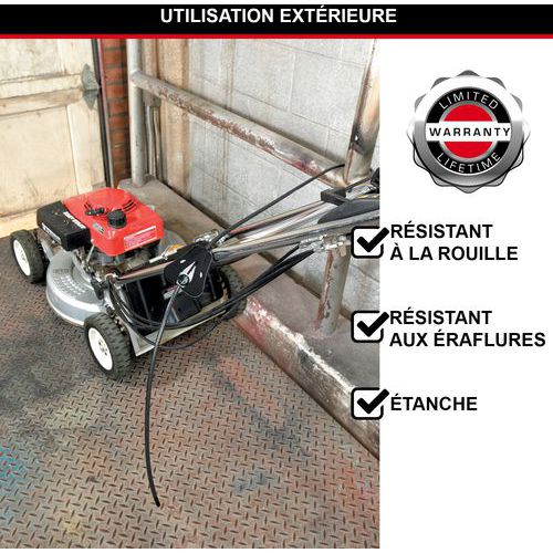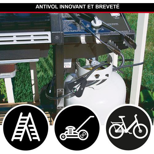 Ideaal voor het beveiligen van deuren (poorten, hekken), sportuitrusting, gereedschap (gereedschapskist, ladder, enz.) en tuinmeubilair (grasmaaiers, ligstoelen, barbecues, enz.).
