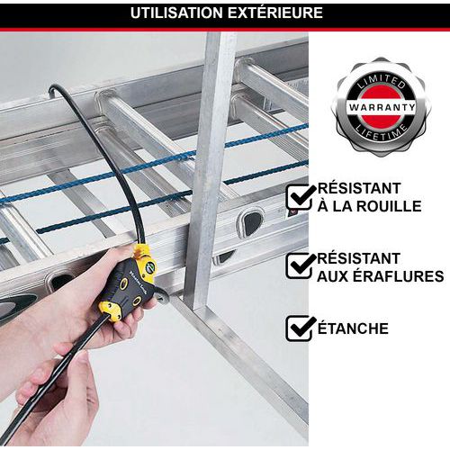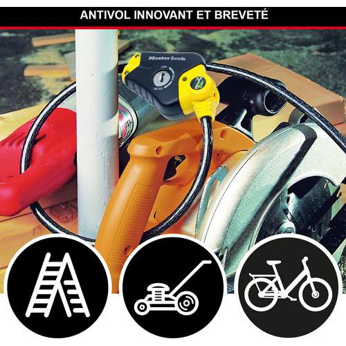 Ideaal voor het beveiligen van deuren (poorten, hekken), sportuitrusting, gereedschap (gereedschapskist, ladder, enz.) en tuinmeubilair (grasmaaiers, ligstoelen, barbecues, enz.).