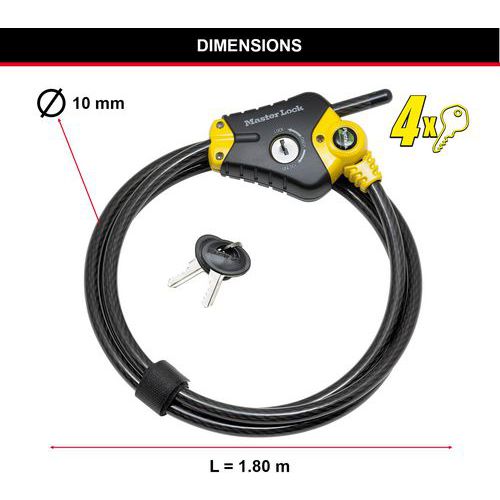 Kabelslot Python™, Ø: 10 mm, Lengte: 4500 mm, Aantal sleutels: 2, Type bevestiging: Zelf te bevestigen