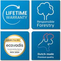 Schrijfoppervlak van dubbelzijdig wit emaillestaal, gesmolten op 800°C Geschikt voor zeer intensief en duurzaam gebruik, levenslange garantie op schrijven en wissen Geanodiseerd aluminium frame met kunststof hoekstukken Het robuuste witte onderstel is voorzien van een lange afleggoot en vier solide industiële wielen, waarvan twee met rem Middels de draaiknop is het bord 360° te draaien en in iedere hoek te fixeren Magneethoudend en droog uitwisbaar Gemaakt met hout uit verantwoord bosbeheer