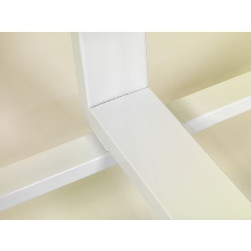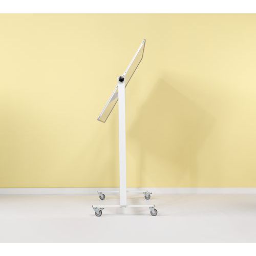 Schrijfoppervlak van dubbelzijdig wit emaillestaal, gesmolten op 800°C Geschikt voor zeer intensief en duurzaam gebruik, levenslange garantie op schrijven en wissen Geanodiseerd aluminium frame met kunststof hoekstukken Het robuuste witte onderstel is voorzien van een lange afleggoot en vier solide industiële wielen, waarvan twee met rem Middels de draaiknop is het bord 360° te draaien en in iedere hoek te fixeren Magneethoudend en droog uitwisbaar Gemaakt met hout uit verantwoord bosbeheer Magnetisch Montage : Zelfbouw