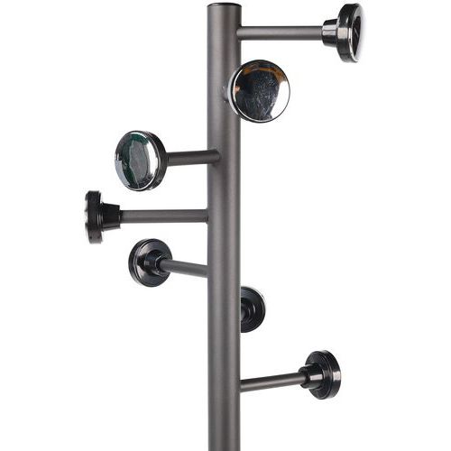 - De kapstok heeft 7 haken die in spiraalvorm achter elkaar zijn geplaatst.