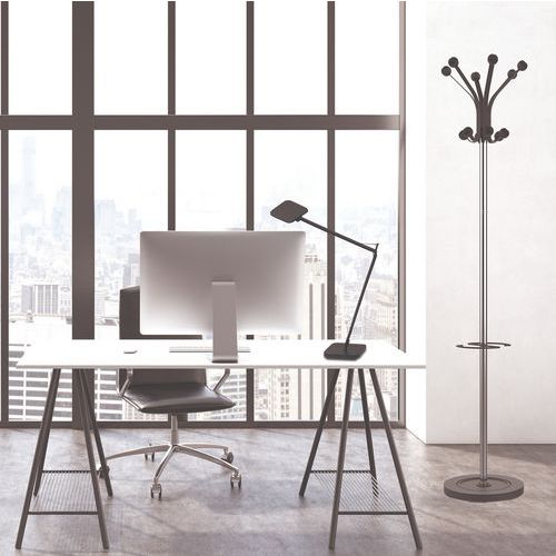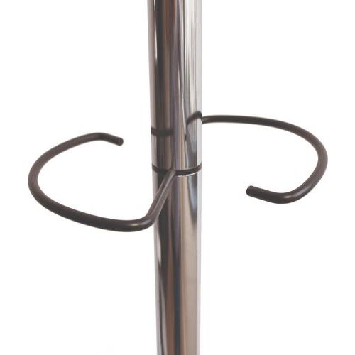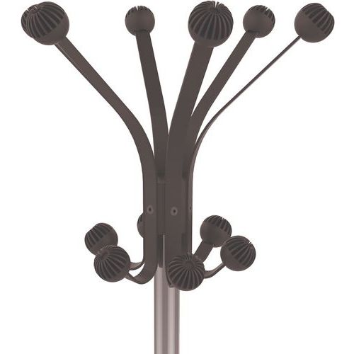 Functionele kapstok uitgerust met een draaiende kop en 12 kapstokhaken. Het nieuwe ontwerp van de halfronde haken voorkomt dat de kleding eraf glijdt en zorgt voor een perfect vorm van de jassen. De HAKEA bestaat uit een steel van verchroomd staal met een totale hoogte van 176 cm en is uitgerust met een paraplustandaard en een groot afdruiprek om tegelijkertijd 6 paraplu's te laten drogen. De zeer stabiele voet zorgt voor de stabiliteit van de kapstok ongeacht de belasting.