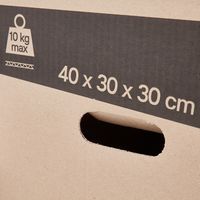 Kartonnen verhuisdoos, Inwendige hoogte: 30 cm, Inwendige breedte: 29.5 cm, Inwendige lengte: 39.5 cm Kartonnen verhuisdoos, Inwendige hoogte: 30 cm, Inwendige breedte: 29.5 cm, Inwendige lengte: 39.5 cm