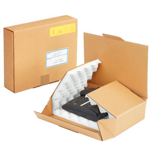 Gemakkelijk en snel afsluitbaar. Verzenddoos met bescherming aan de binnen- en buitenkant. Verpak glaswerk, optische instrumenten, uurwerken of precisie-mechanica
