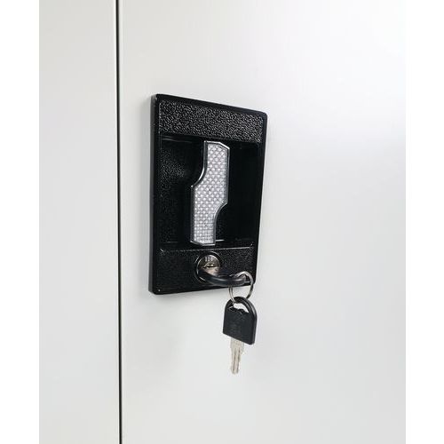 - Veilig opbergen van voorwerpen dankzij het sleutelslot dat in de kast uit één stuk is geïntegreerd.