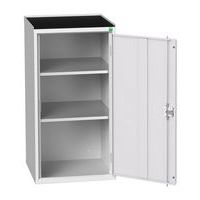 Gemaakt van plaatstaal met een slijtvaste gepoedercoate afwerking. Met 1 x 900 mm deur gemonteerd met een 3-puntsslot. Geleverd met 2 gegalvaniseerde stalen legborden met een draagvermogen van 60 kg, verstelbaar in een raster van 25 mm. Gemaakt in het UK Max. belasting per legbord (kg) : 35
