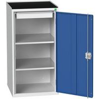 Gemaakt van plaatstaal met een slijtvaste gepoedercoate afwerking. Met 1 x 900 mm deur gemonteerd met een 3-puntsslot. Geleverd met 2 gegalvaniseerde stalen legborden met een draagvermogen van 35kg, verstelbaar in een raster van 25 mm. Compleet met: 1 x 100 mm lade, met een draagvermogen van 10 kg, geïntegreerde handgrepen en 100% uitschuifbare rollagergeleiders. Gemaakt in het UK Max. belasting per legbord (kg) : 35