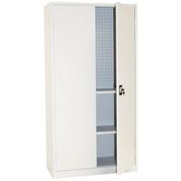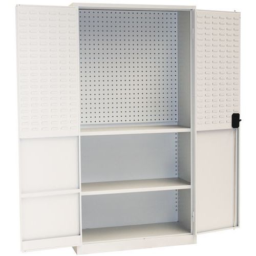 Geleverd inclusief 2 verstelbare legborden, 1 assortiment kunststof bakken en haken nr. 2. Gereedschapspaneel met vierkante gaten (afmetingen: 10 x 10 mm, afstand tussen de gaten: 38 mm).