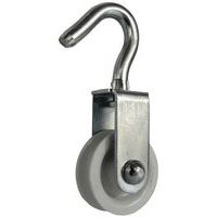 - Katrol (behuizing en blokschijf) van zwart kunststof D 70 m met rvs haak 316 l, gesmeed