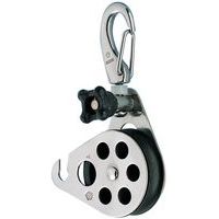 - Katrol (behuizing en blokschijf) van zwart kunststof met rvs haak 316L, gesmeed